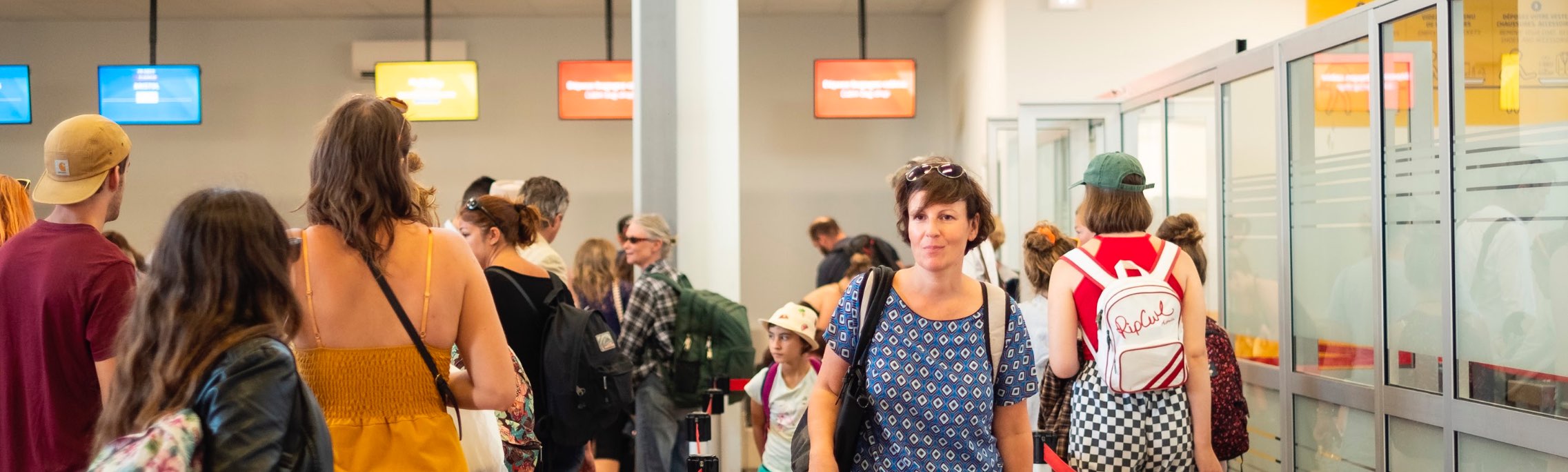 Un fois à l’aéroport, vous pourrez vous rendre directement à la salle d'embarquement si vous voyagez sans bagage, ou aller déposer votre bagage de soute au comptoir d’enregistrement.